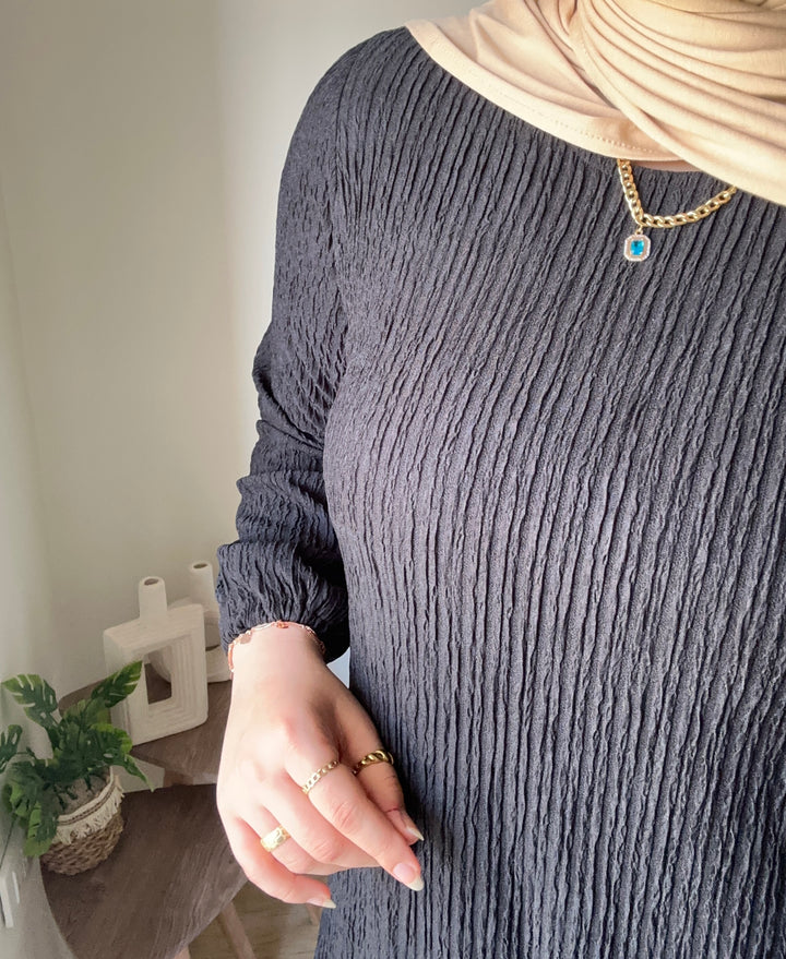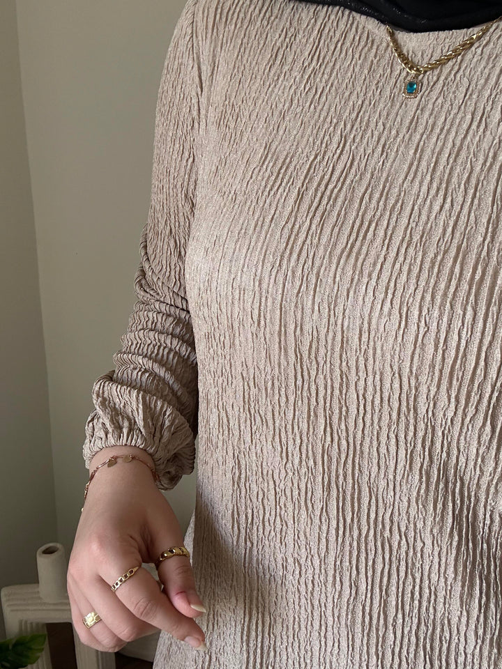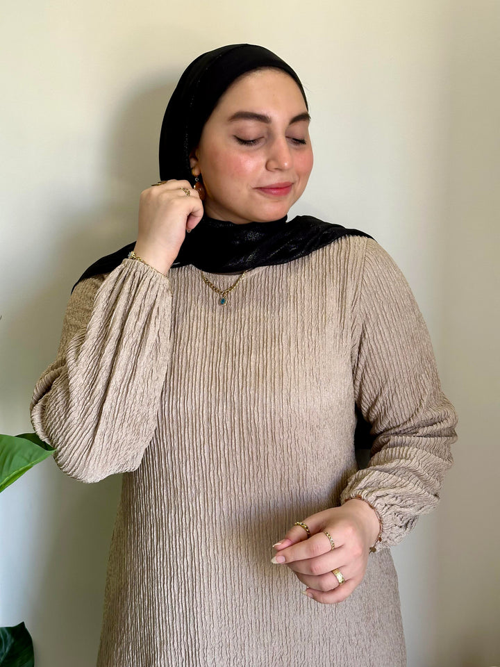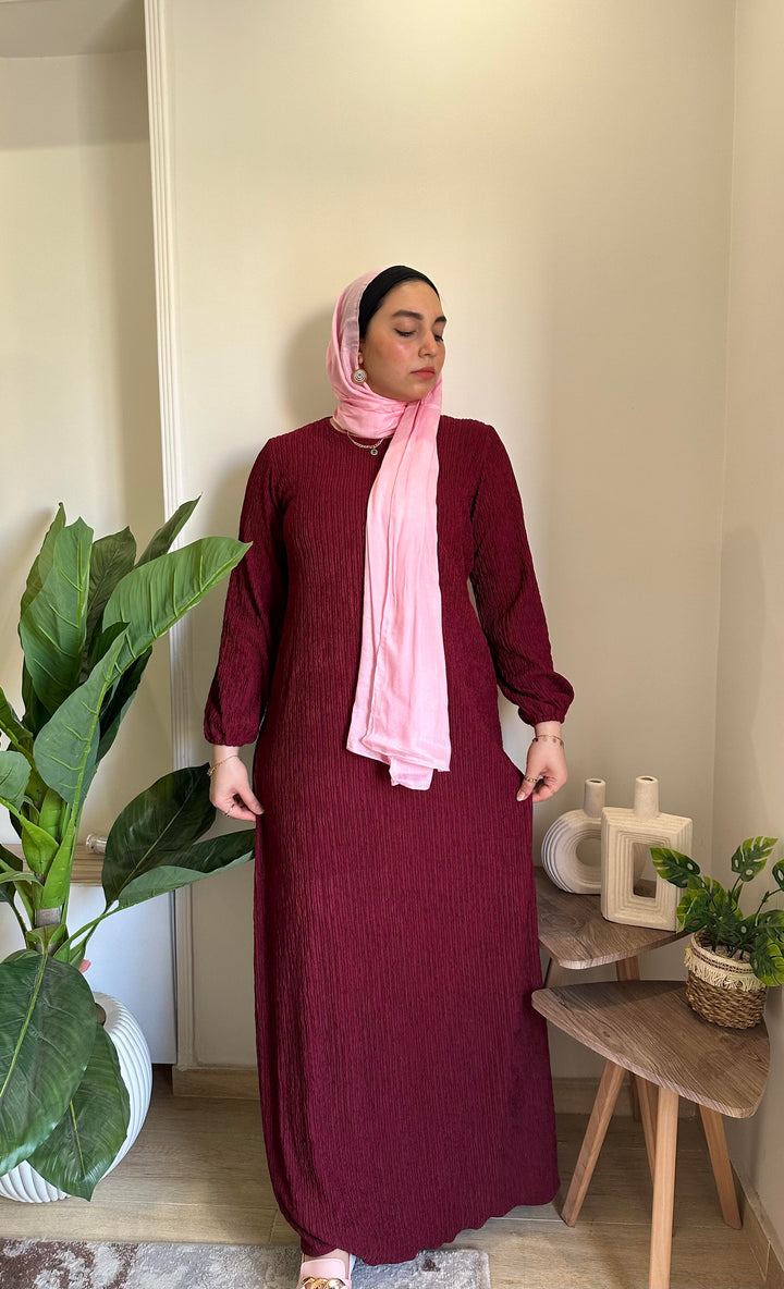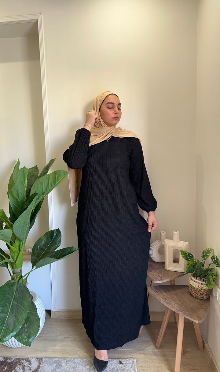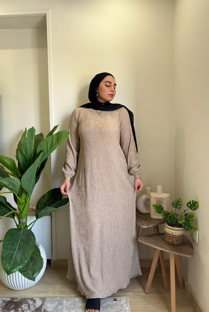 احصلي على إطلالة أنثوية ناعمة مع فستان بيزك من خامة الكوريشة المصمم ليوفر لكِ الراحة والأناقة في آنٍ واحد. يتميز بقصة انسيابية تناسب مختلف الأجسام، مع حزام قابل للتعديل ليوفر لكِ حرية التغيير حسب رغبتكِ.