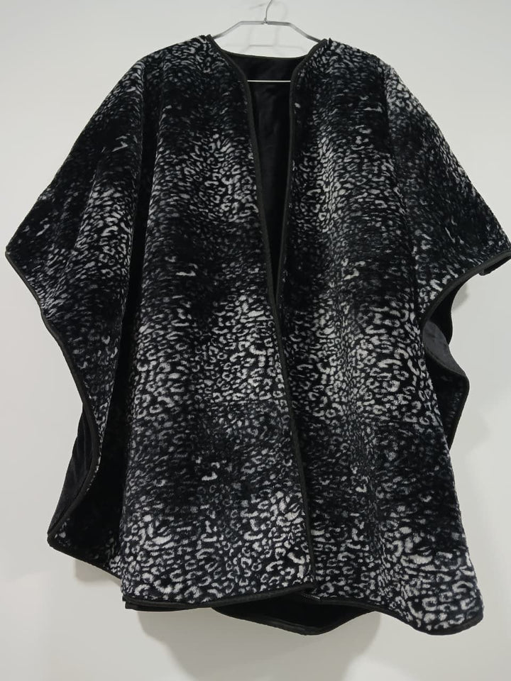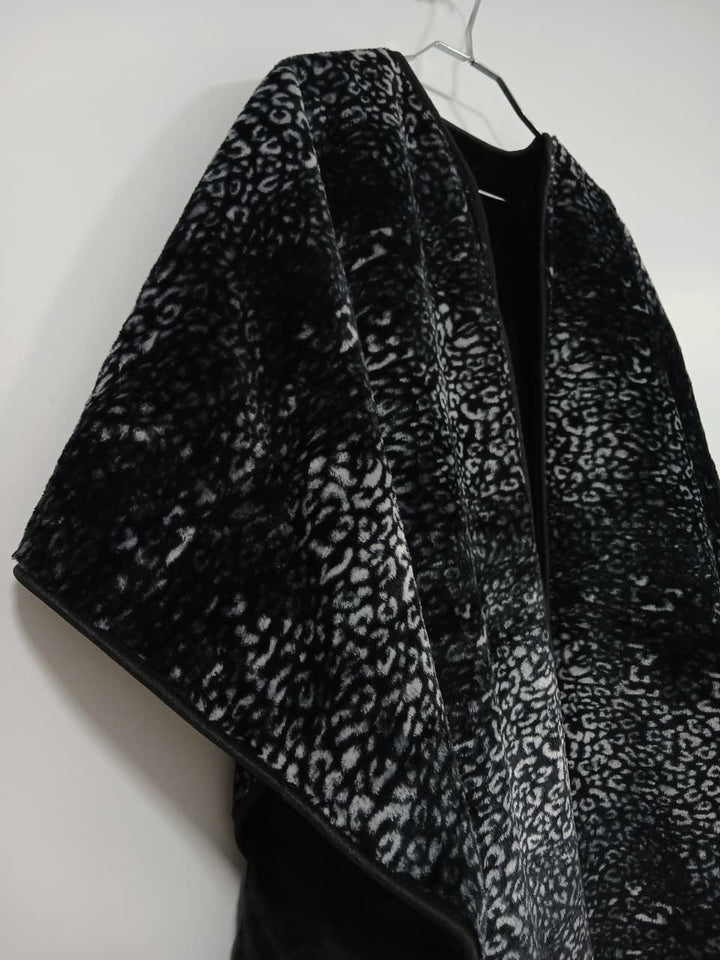كاب وجهين فرو كامل (اسود - منقوش رمادي)